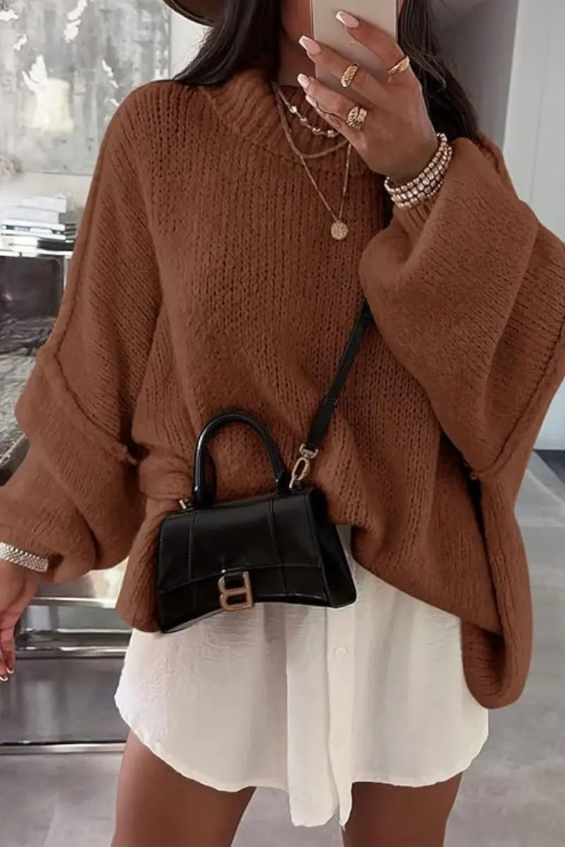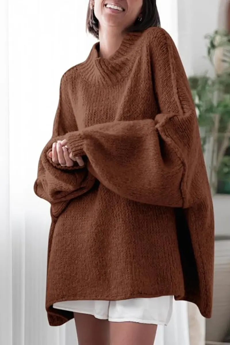 Saodimallsu’s Oversized Batwing Sweater is a fall essential designed for comfort and quiet confidence. The ribbed knit texture adds depth, while the mock neck and batwing sleeves create a relaxed silhouette that flatters every frame. Whether styled with leggings for a cozy day in or layered over a midi skirt for a streetwear twist, this pullover blends softness with structure. It’s the kind of piece that makes you feel hugged — without sacrificing style.